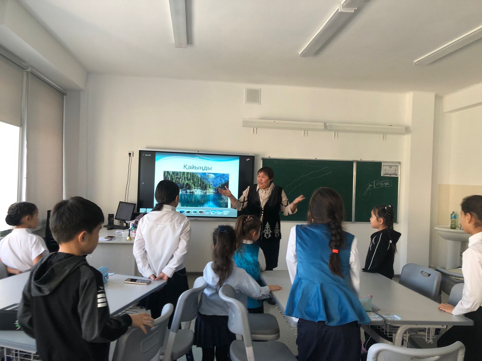 Сабақ барысында балаларға Қостанай облысы туралы қысқаша ақпарат берілді. Қостанай облысының картасы бойынша тәжірибелік жұмыстар жүргізіліп, аудандармен таныстырылды. Балалар процеске белсене қатысып, туған жер туралы білімдерін көрсетті.