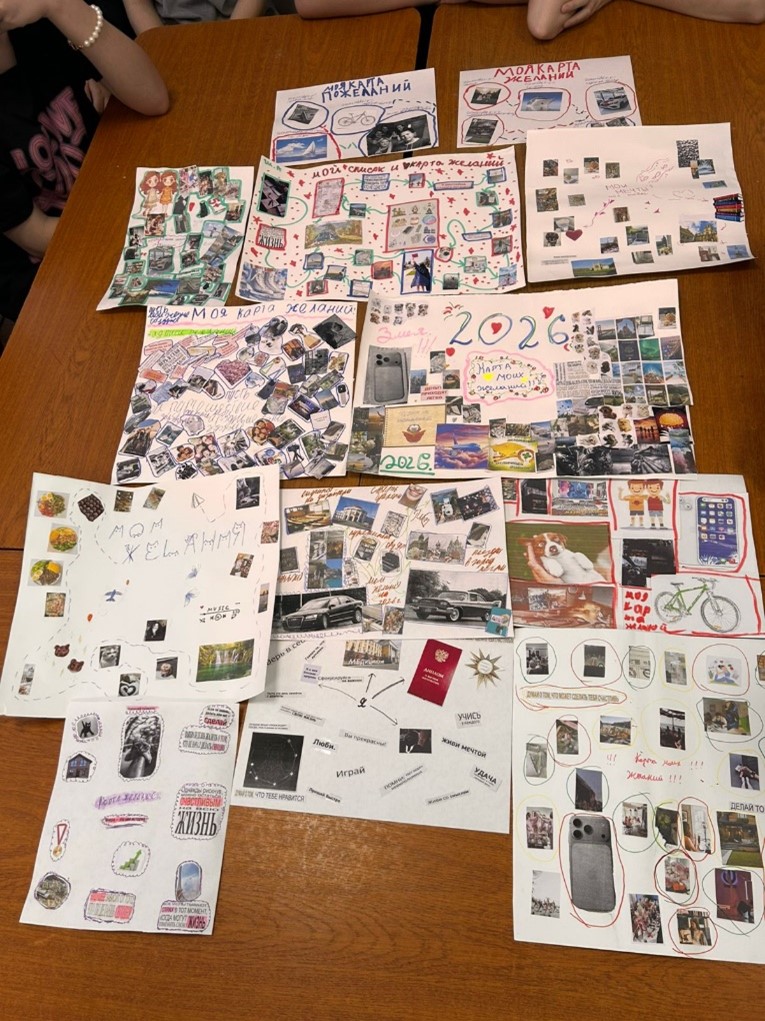 Сабақ соңында қатысушылар өз әсерлерімен бөлісті және педагог-психологтан «арман картасын» күнделікті өмірде қалай қолдануға болатыны жөнінде кеңестер алды, бұл өз жетістіктерін жоспарлауға және күнделікті қуаныштарды бағалауға көмектеседі.